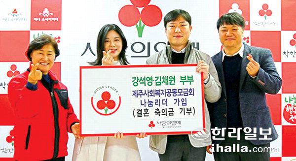 제주시 오라동에 거주하는 강석영(31)·김채원(26) 부부는 지난 1일 제주사회복지공동모금회(회장 강지언)를 방문해 결혼식 축의금을 기부하고 제주 나눔리더 145호·146호로 가입했다.