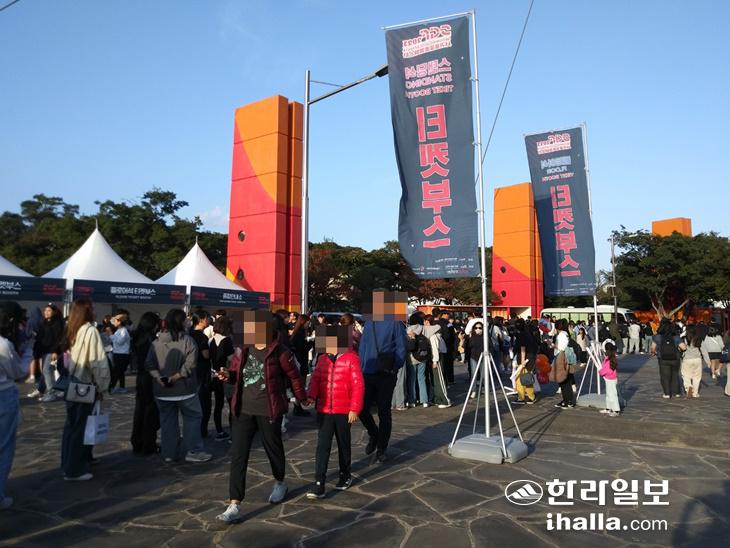 지난 10월 28일 제주월드컵경기장에서 열린 서귀포글로컬페스타 K팝 콘서트장에 입장하기 위해 관람객들이 티켓 배부처에 줄을 서 있다. 한라일보 DB