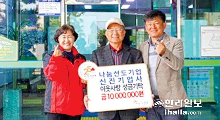 신진기업사(대표 정병식)는 지난 6일 제주시 외도동주민센터에서 이웃사랑 성금 1000만원을 제주사회복지공동모금회(회장 강지언)에 기탁했다. 이번 기탁된 성금은 관내 어려운 이웃의 생계비·의료비 등으로 지원될 예정이다.