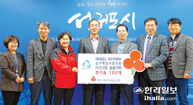 서귀포시는 MG새마을금고 서귀포시 실무책임자 협의회(회장 현영봉)와 지난 5일 서귀포시청에서 겨울철 어려운 이웃을 위한 물품(전기요 100장) 기탁식을 가졌다.