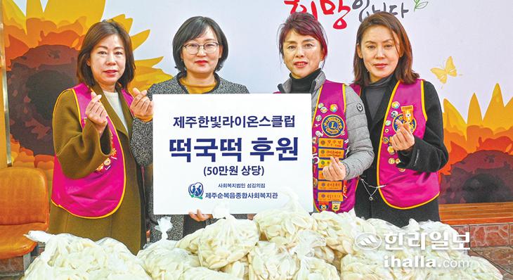 제주한빛라이온스클럽(회장 양주연)은 연말을 맞이해 제주순복음종합사회복지관(관장 조영숙)에 50만원 상당의 떡국떡을 기부했다. 양주연 회장은 "앞으로도 필요한 곳에 후원 될 수 있도록 노력하겠다"고 밝혔다.