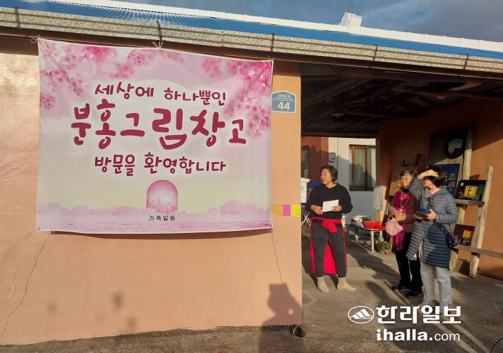 그림 그리는 '선흘 할머니'들이 다시 일을 냈다. 지난해에 이어 또 한 번의 그림 전시회를 열고 있다. 2021년부터 해마다 이어진 '할머니의 예술창고' 프로그램의 두 번째 전시다. 그 덕에 제주시 조천읍 선흘1리 마을에는 9개의 미술관이 열렸다. 할머니들의 삶의 역사가 고스란히 남아 있는 집과 창고 등에는 '분농미술관', '마당미술관', '동백미술관', '소막미술관', '그림창고' 등의 간판이 달렸다.