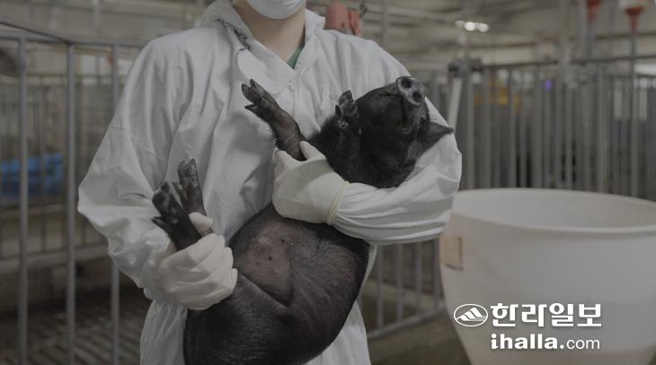 제주특별자치도 축산진흥원 흑돼지유전자원연구센터의 인프라를 활용해 각종 신약개발과 연구에 사용될 제주 무균돼지 생산 연구가 진행되고 있다. 제주도 제공