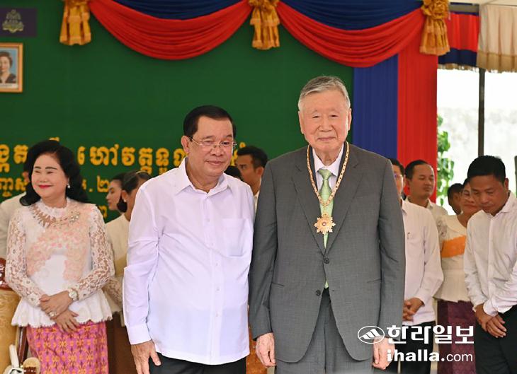 또 캄보디아에는 디지털 피아노 3000여 대와 칠판 4만여 개, 초등학교 300개교 건립 기금 약 890만 달러를 기부하고, 태권도 발전기금 약 55만 달러를 비롯해 컨테이너 3대 분량의 의류 및 신발 기부, 응급차 등 의료기금 지원 등을 이어 나가고 있다. 이 회장은 캄보디아의 국가 발전과 한 ‧ 캄보디아 간 우호 증진에 기여한 공로를 인정받아 지난 4월 캄보디아 훈센 총리로부터 캄보디아 왕국 최고 훈장인 국가 유공 훈장(Medal of National Merit)을 수상하기도 했다.