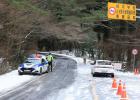 제주도 산간에 대설특보가 내려진 17일 제주시 어승생 삼거리 1100도로 입구에서 경찰이 차량을 통제하고 있다. 강희만기자