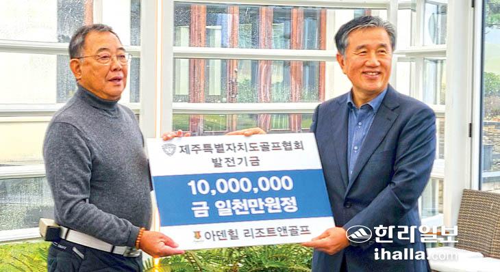 제주 아덴힐리조트앤골프(대표이사 정종인)는 최근 도내 주니어골퍼 육성을 위한 골프발전기금 1000만원을 제주특별자치도골프협회에 전달했다.
