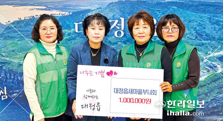 서귀포시 대정읍 새마을부녀회(회장 이영미)는 지난 12일 공동복지모금회에 100만 원을 기탁했다. 기부금은 관내 복지 사각지대 가구들을 위해 쓰일 예정이다.