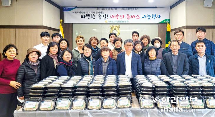 서귀포시축협(조합장 김용관)은 지난 13일 조합 부녀회원과 임직원 50여명이 참여해 제주산 한돈 150kg으로 돈가스 500여팩을 만들어 복지시설 등에 전달했다.