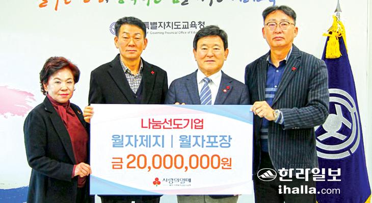 (주)월자제지(대표 이창용)와 (주)월자포장(대표 이창헌)은 지난 18일 제주사회복지공동모금회를 통해 제주특별자치도교육청에 '작은 사랑의 씨앗' 성금 2000만원을 기탁했다.