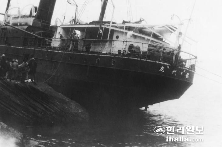 고산-용수 해안에 좌초된 제1군대환. 사진 原口利 소장