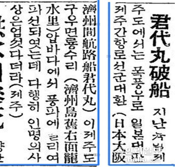 [한라일보] 지난 회에 서술한 대로 1923년 2월부터 제주도와 오사카를 직항하는 전용기선의 항로가 처음 열렸다. 맨 먼저 오사카행 배를 띄운 주체는 제주의 토착자본가들이 세운 제우사 기선부와 제주상선주식회사였다. 그러나 제우사는 자본력의 열악함 때문인지 작은 기선을 운항시키다가 8월 이후 제주상선에 통합되었다. 제주상선 또한 1924년 이후 일본자본 아마사키기선과 제휴하여 제주도 항포구의 거룻배를 운영하는 하청 업무를 수행하게 되었다.