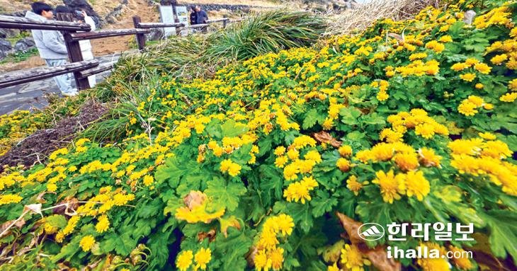 3일 서귀포시 성산읍 한 산책로 주변에 산국이 활짝 피어 제주를 찾은 관광객들의 시선을 사로잡고 있다. 이상국기자
