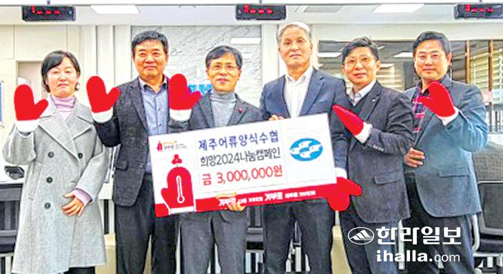 제주어류양식수협(조합장 한용선)은 지난 5일 제주시 제주어류양식수협 본소에서 희망 2024나눔캠페인 이웃사랑 성금 300만원을 제주사회복지공동모금회(회장 강지언)에 기탁했다.
