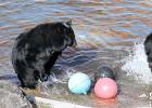 사육사들이 던져준 귤을 먹는 반달가슴곰. 이상국기자