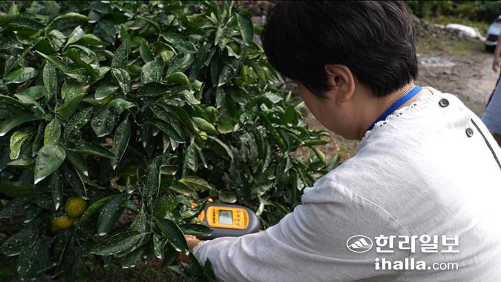 감귤 당도를 측정하는 장면. 서귀포시 제공