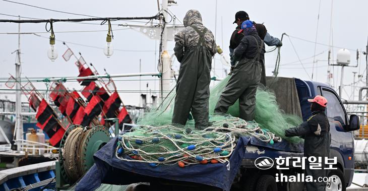 18일 제주시 한림읍 한림항 어선부두에서 어민들이 출어 준비를 하고 있다. 강희만기자