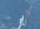 낚시줄로 추정되는 폐어구에 입과 꼬리가 걸린채 두 달 넘게 생활해 온 남방큰돌고래 새끼가 21일 낮 12시5분쯤 서귀포시 대정읍 일과리 해상에서 한자리를 계속 빙글빙글 맴돌며 유영을 하는 등 '정형 행동'을 하는 모습. 다큐제주 오승목 감독 제공