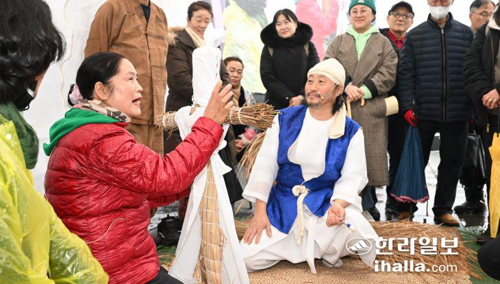 '2024 탐라국입춘굿' 행사 둘째 날인 3일 열린 주젱이·허멩이 시연. 이상국기자