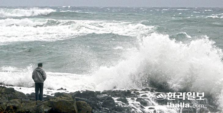 강풍주의보가 내려진 5일 제주시 한경면 고산리 해안에 높은 파도가 밀려오고 있다. 강희만기자
