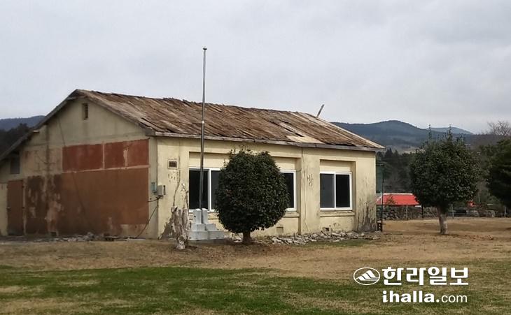 옛 상천분교 건물. 낡고 오래된 건물이지만 상천리 주민들은 제주4·3으로 불탔던 마을을 재건하면서 설립한 학교의 역사를 말해주는 상징적 건물이라며 철거를 반대하고 있다.