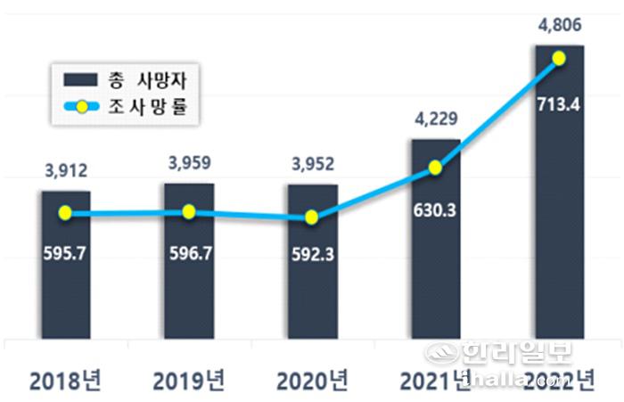 최근 5년간 제주지역 사망자와 조사망률 추이. 제주자치도 소방안전본부 제공