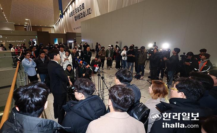 한화 이글스와 계약하며 12년만에 한국프로야구 KBO리그로 돌아오는 류현진이 23일 오전 인천국제공항 제2여객터미널에서 한화 2차 캠프 합류를 위해 일본으로 출국하기 전 취재진과 인터뷰하고 있다. 연합뉴스