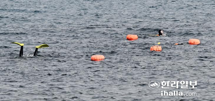 4일 제주시 구좌읍 평대리 앞 바다에서 해녀들이 물질을 하고 있다. 강희만기자