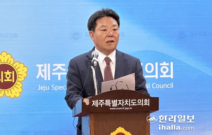 허용진 전 국민의힘 제주도당위원장이 7일 제주도의회 도민카페에서 기자회견을 열고 탈당을 공식 선언했다.
