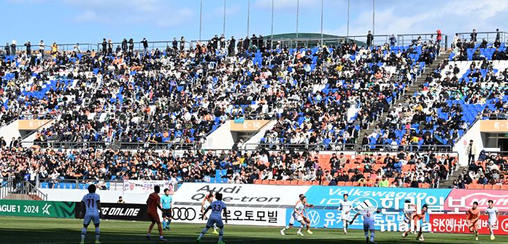 10일 화창한 봄날씨 속에 서귀포시 월드컵경기장에서 열린 하나은행 K리그1 2024 제주유나이티드와 대전하나시티즌과의 2라운드 홈 개막전에 많은 관중이 찾아 선수들을 응원하고 있다. 강희만기자