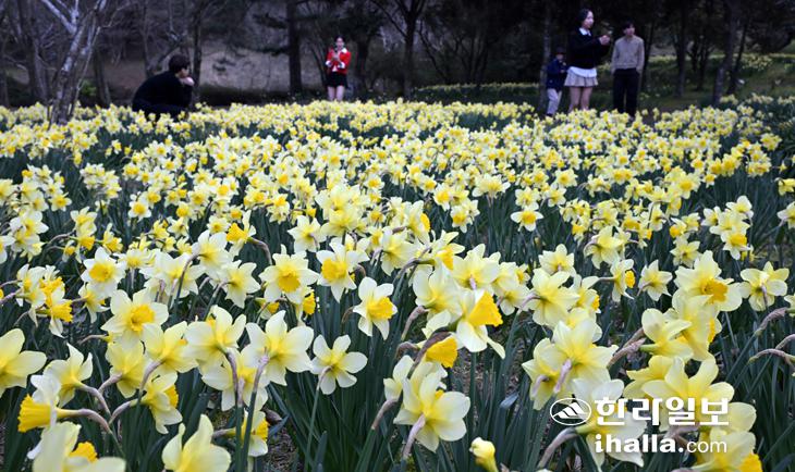 절기상 춘분인 20일 제주시 한라수목원에 노란 수선화가 만개해 탐방객들의 눈길을 사로잡고 있다. 강희만기자
