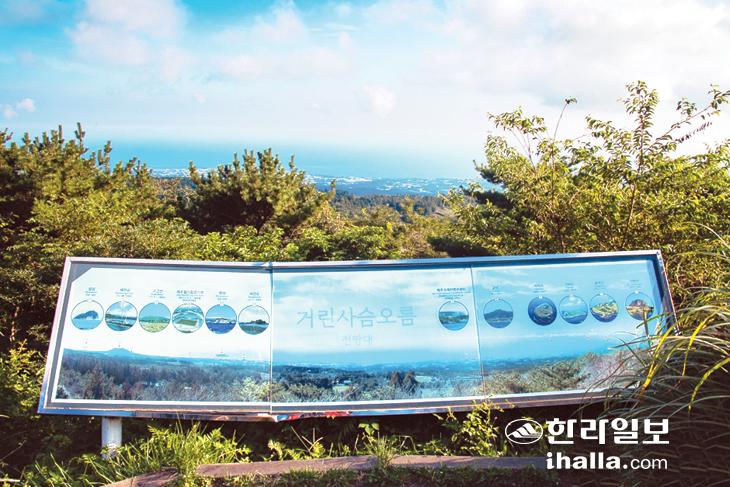 1100고지 인근에 자리하고 있는 거린사슴오름에는 전망대가 하나 있다. 이곳은 서귀포 시가지와 앞바다가 한눈에 들어오는 경치 좋은 곳으로, 서귀포 앞바다에 위치한 섶섬, 범섬, 문섬들의 전경도 함께 감상 가능하다. 특히 해 질 무렵 서쪽 하늘을 붉게 물들이는 광경은 절로 감탄을 자아낸다. 붉은 하늘이 점차 검게 변하면 별들은 하나둘 모습을 드러내기 시작한다.