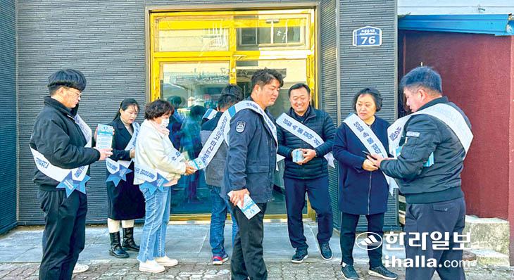 바르게살기운동동홍동위원회(위원장 김대성)는 지난 21일 서귀포시 동홍초등학교 앞에서 위원 10여 명이 참여한 가운데 교통안전 거리 질서 캠페인을 실시했다.
