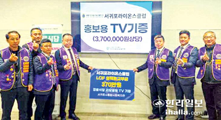 서귀포라이온스클럽(회장 김대윤)은 지난 22일 전달식을 갖고 서귀포종합사회복지관(관장 강희정)에 경로식당 이용 어르신을 위한 370만원 상당의 대형TV를 후원했다.
