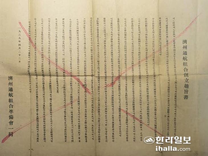 동아통항조합 임시대회 자료집(1930년 9월 8일) 강요배 화백 기증자료, 제주민속자연사박물관 소장.