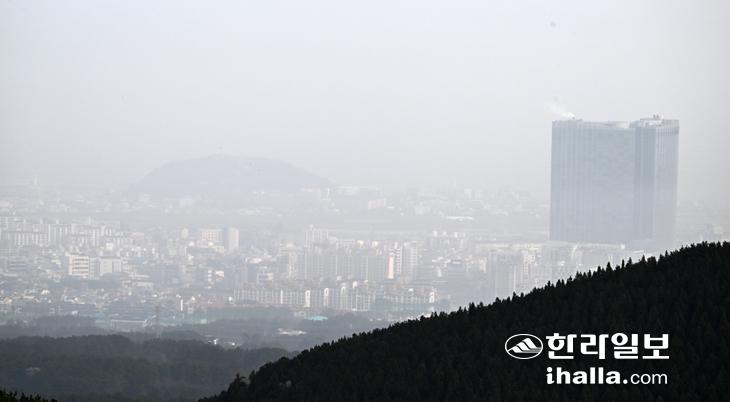 3월 끄트머리인 31일 황사가 제주섬을 덮친 가운데 산록도로에서 바라본 제주시가지가 뿌옇게 보이고 있다. 강희만기자