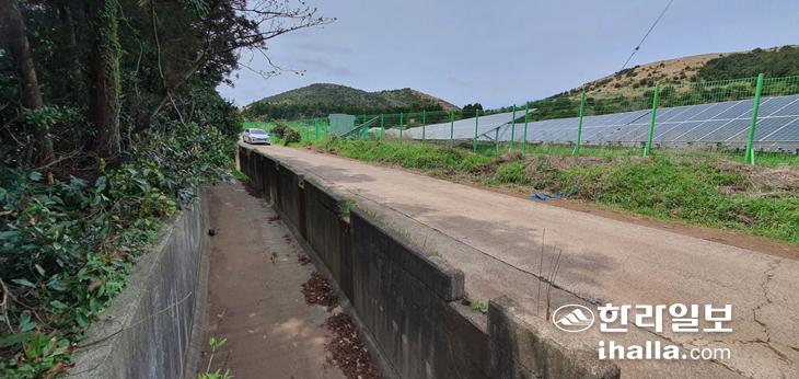 안돌오름 배수구. 오른쪽에 밧돌오름이 보인다. 김찬수