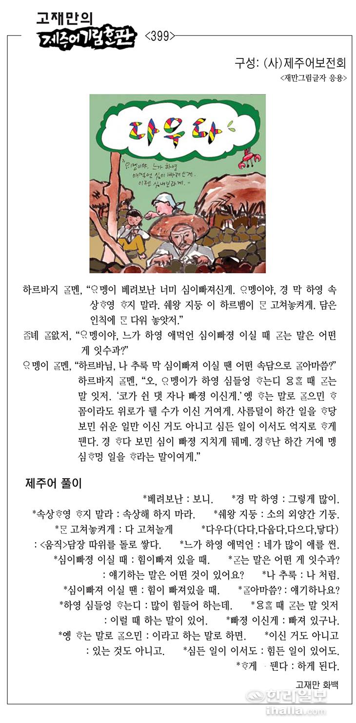 [고재만의 제주어기림혼판] 제주어 풀이(399)