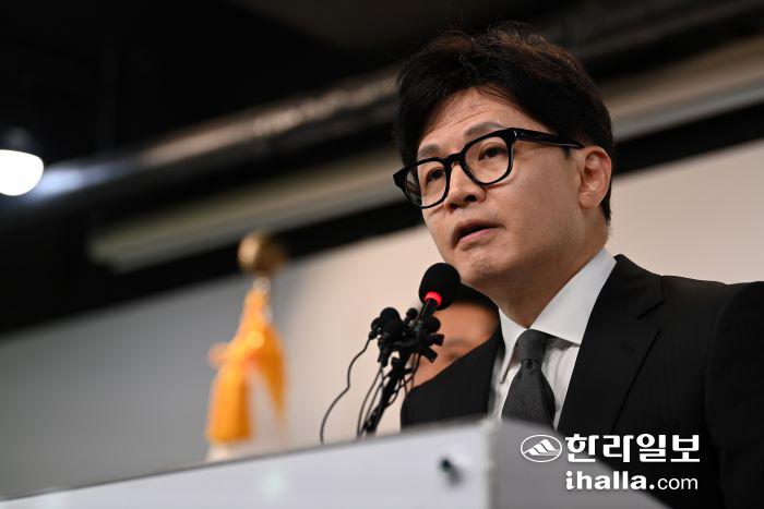 국민의힘 한동훈 비상대책위원장이 11일 서울 여의도 국민의힘 당사에서 제22대 국회의원 선거 관련 입장 발표를 하고 있다. 연합뉴스