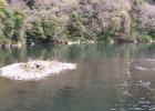 천지연폭포 매표소 앞 물가 인근에 새 먹이 주기를 금지하는 안내판이 부착되어 있다. 진선희기자
