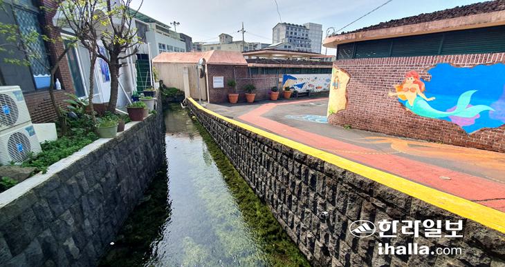 도두동 마을 안을 흐르는 오래물 물골, 이 건물들은 샘물을 이용하기 위한 시설이다. 김찬수