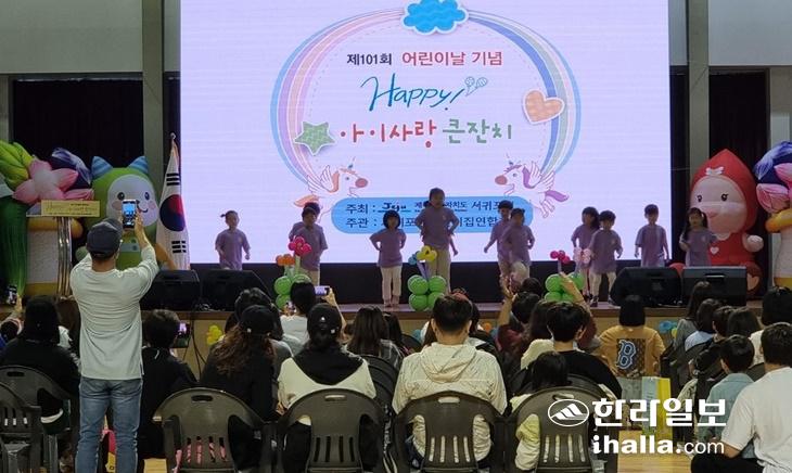 서귀포시가 주최하고 서귀포시어린이집연합회(회장 김승자)가 주관하는 제102회 어린이날 기념식과 기념행사는 내달 5일 제주월드컵경기장 광장에서 개최된다. 이날 오전 9시40분 식전 행사에 이어 10시부터 '우리 아이들과 함께하는 해피! 아이 사랑 큰 잔치'가 열린다.