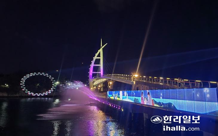 서귀포 야간 관광 활성화 사업으로 운영 중인 새연교 음악분수. 서귀포시 제공