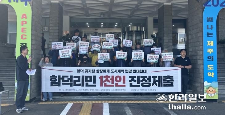함덕곶자왈(상장머체)도시계획변경반대주민회, (사)곶자왈사람들, (사)제주참여환경연대는 2일 오전 제주도청 앞에서 기자회견을 열고 함덕곶자왈 상장머체 도시계획 변경 중단을 요구했다.