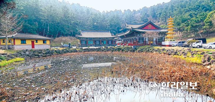 원당봉 분화구 문강사와 연못, 샘에서 솟아난 물이다. 김찬수