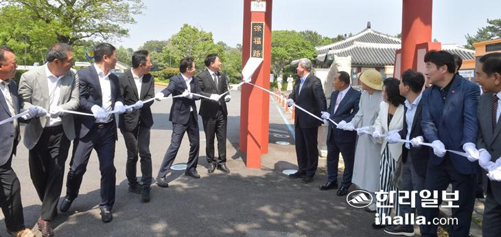 7일 오후 서귀포시 서복불로초공원에서 서복거리 지정 기념 현판 제막식이 열리고 있다. 이상국기자