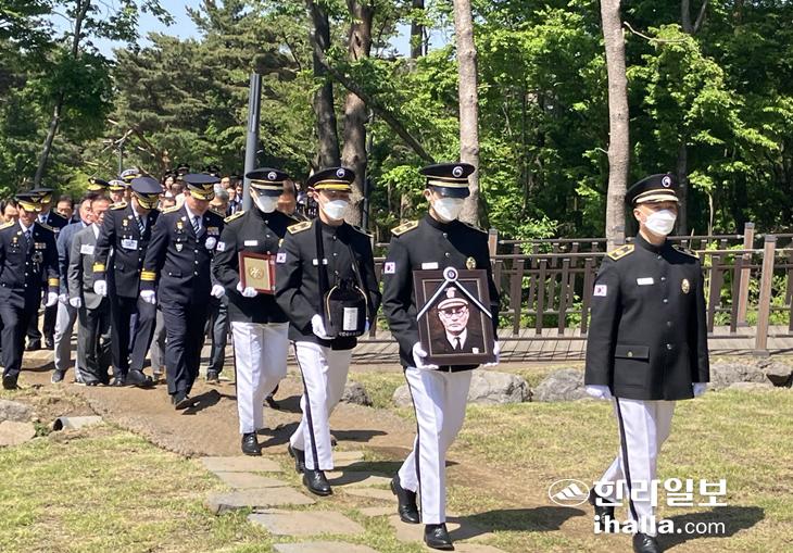 경찰청은 10일 오후 2시 제주국립호국원에서 고 문형순 서장의 영결식 및 안장식을 거행했다.