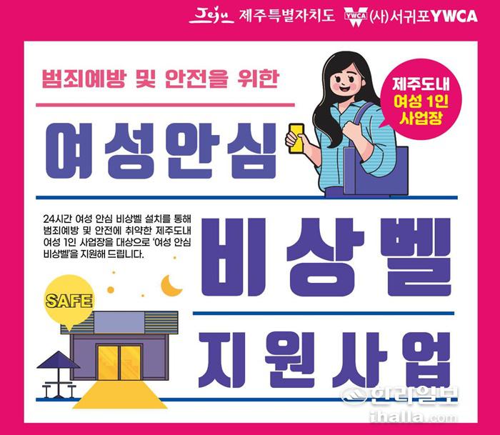 서귀포YWCA는 올해도 제주 전역을 대상으로 여성 1인 사업장 50개소를 새로 모집해 '2024 여성 안심 비상벨 지원 사업'을 벌인다. 지난 2일부터 올해 사업 신청을 받고 있고 예산 소진 시까지 접수가 이뤄진다.