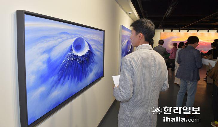 14일 개막한 한라일보 창간 35주년 기념 채기선 초대전 '한라산'. 이상국기자