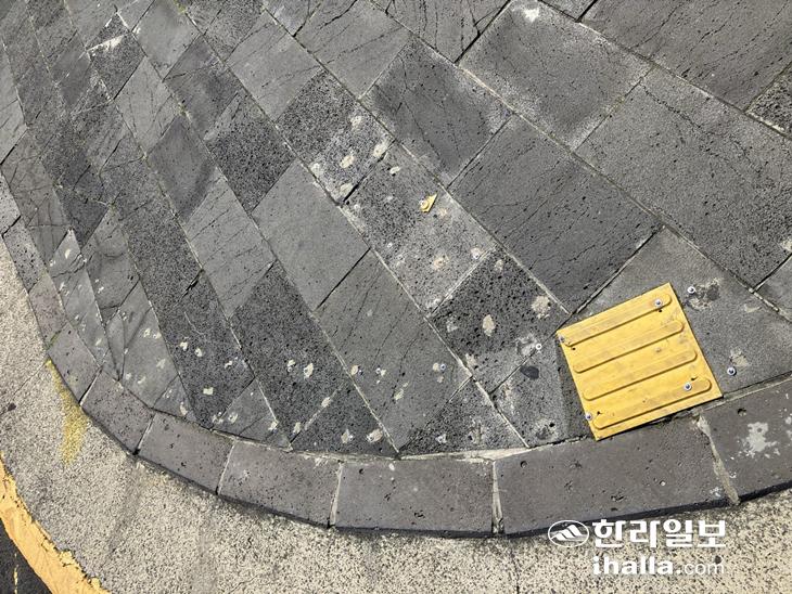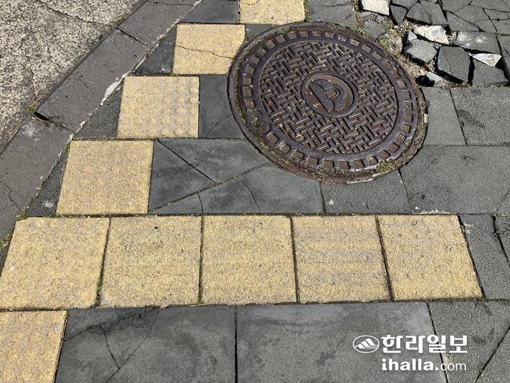 제주시 건입동 인근 점자블록이 훼손된 채 방치돼 있다.