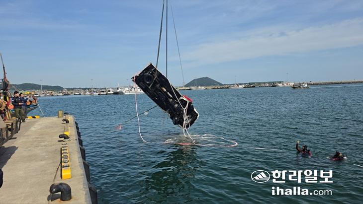 바다에 추락한 1t 트럭. 서귀포경찰서 제공